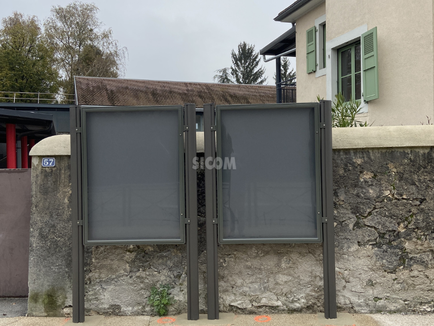 Une solution robuste et esthétique pour une parfaite intégration en milieu urbain ou rural. Mobilier d’affichage public aux multiples déclinaisons, permettant plusieurs possibilités d’installation (fixation murale ou sur profilé aluminium), de personnalisation, en teinte et en format.